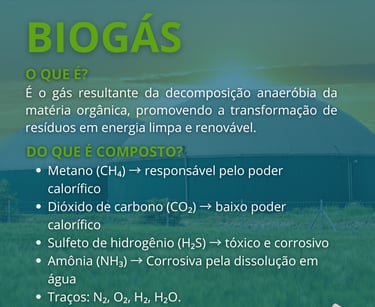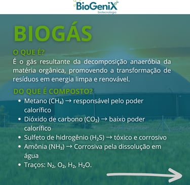 É o gás resultante da decomposição anaeróbia da matéria orgânica, promovendo a transformação de resíduos em energia limpa e renovável.