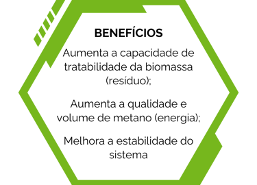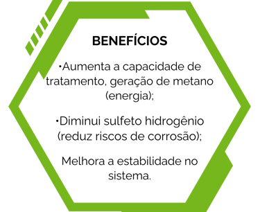 Os microorganismos presentes nessa formulação aumentam a produção de metano e reduzem a geração de gás sulfídrico e amônia.